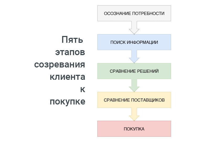 Обычно споры крутятся вокруг этапов принятия решения о покупке, которые показывают эволюцию клиента с течением времени.